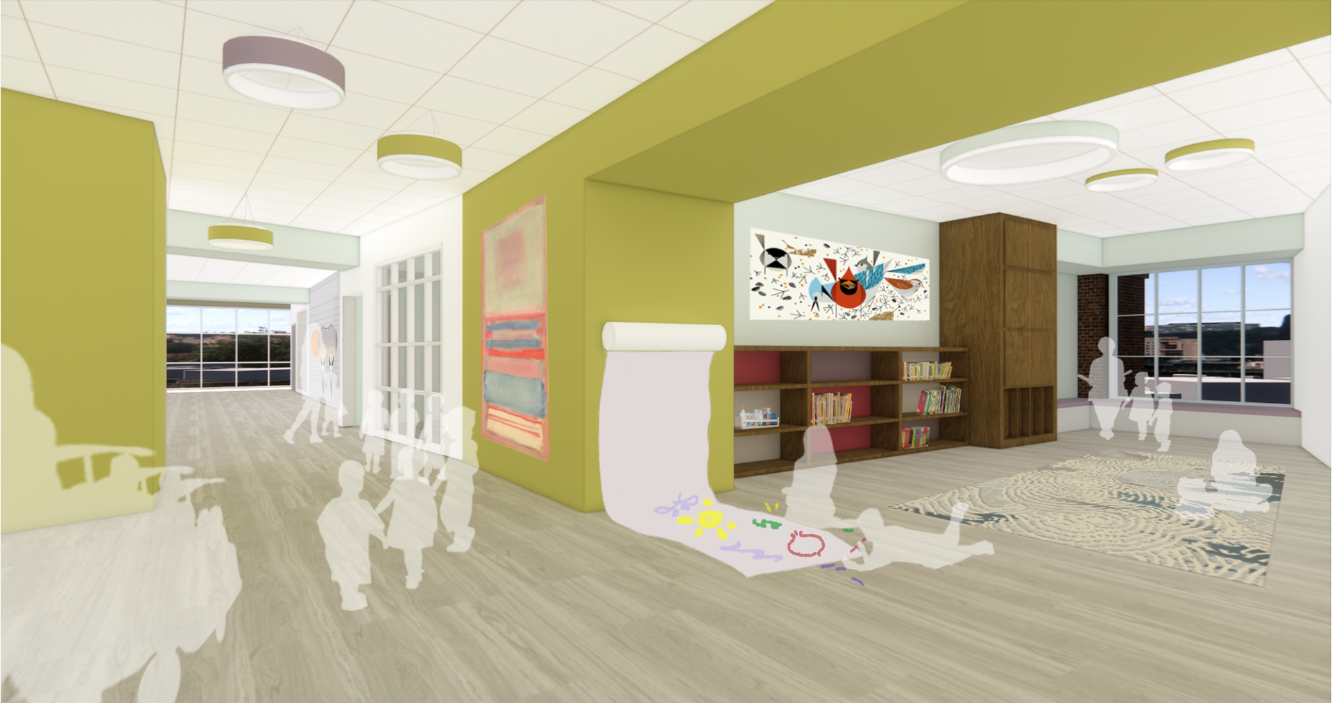 Fresh lighting, paint, flooring, ceilings, and state-of-the-art preschool design